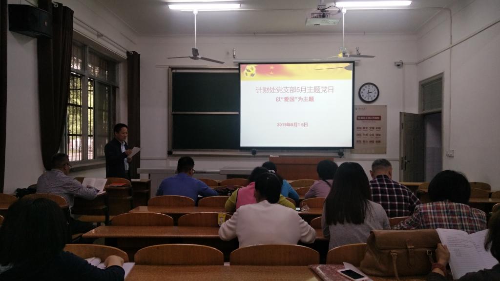 5月16日下午,计财处全体党员在东校区1教-108室围绕“爱国”主题开展支部党日活动。会议由党支部书记柳彦彬同志主持。