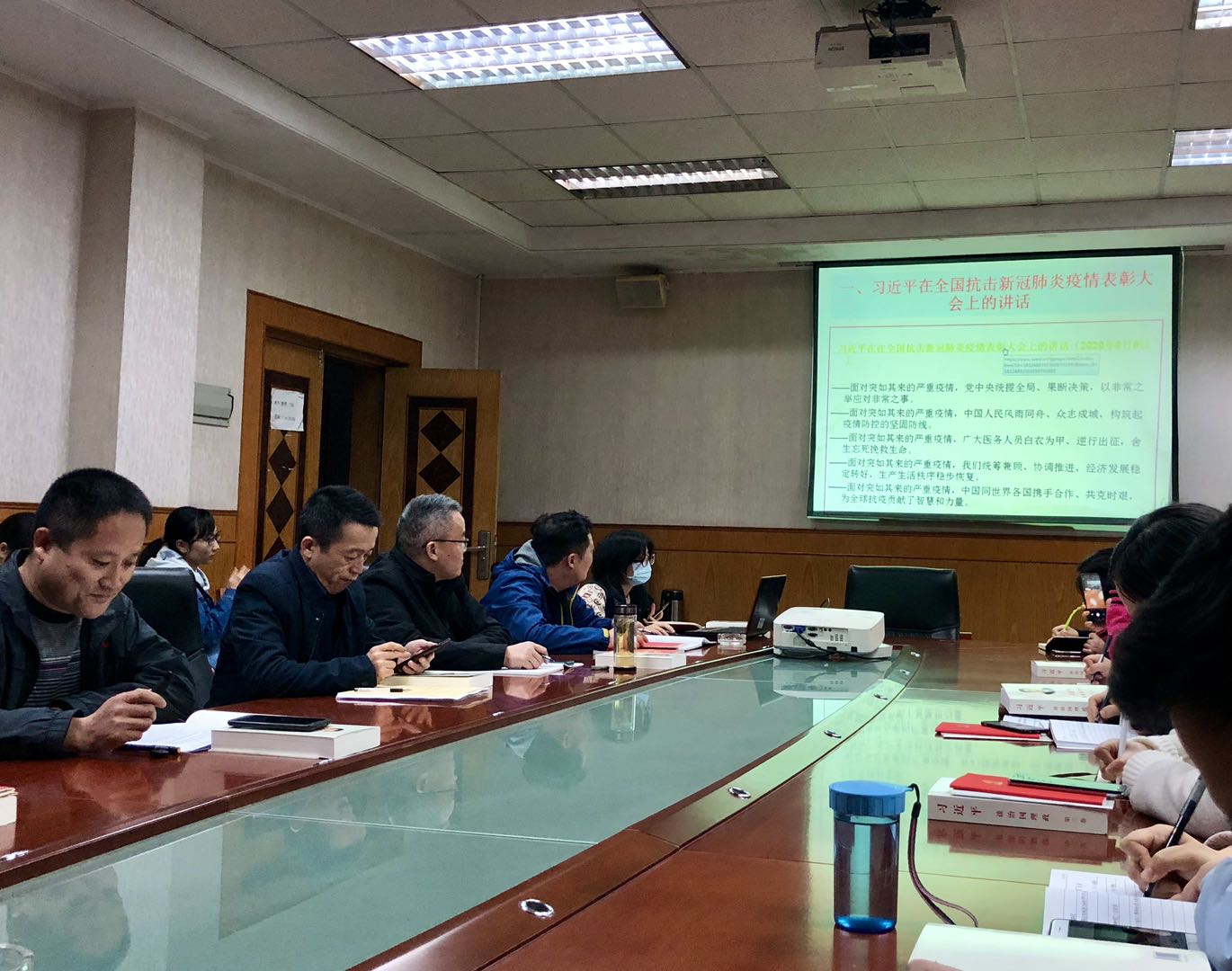 全处职工学习了习近平在全国抗击新冠肺炎疫情表彰大会上的讲话和习近平在教育文化卫生体育领域专家代表座谈会上的讲话精神;学习了学校加强“学习强国”学习平台推广使用实施办法,要求党员带头学、群众积极学;学习了学校加强党的政治建设的工作方案 。结合处业务工作,有针对性地组织学习了学校有关最新文件精神。最后柳书记向全处职工传达了《湖北省财政厅关于印发全面实施预算绩效管理系列制度的通知》(鄂财绩发〔2020〕3号),宣贯预算绩效管理相关制度 。