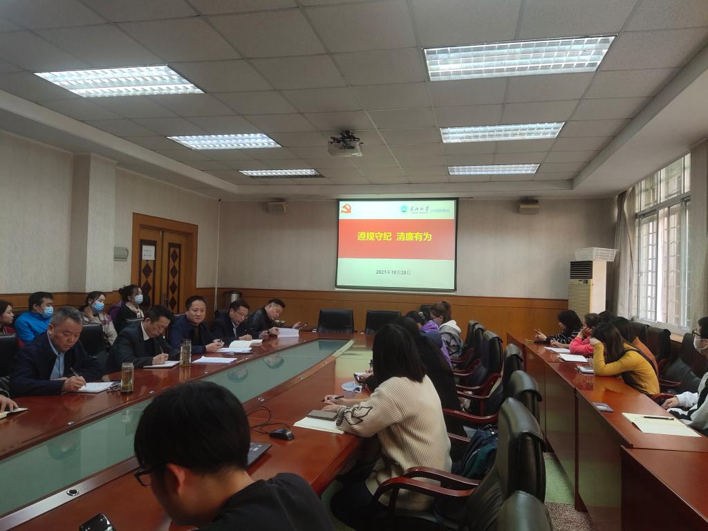 1028日下午,计财处党支部在行政楼126室以开展“创清廉校园 树新风正气”主题党日的形式,组织全处职工开展廉政教育专题学习,支部书记柳彦彬主持学习活动。