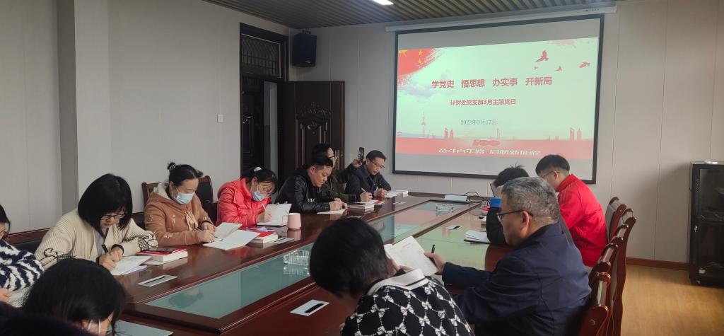 3月17日下午,计财处党支部在行政楼北319室开展3月主题党日活动,由宣传委员徐庆同志主持。