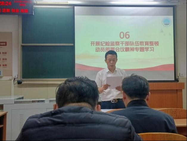 支部书记唐伦刚逐一传达学习了全国纪检监察干部队伍教育整顿动员部署会议、湖北省纪委监委动员部署会议、校纪委纪检监察干部队伍教育整顿动员部署会会议精神。