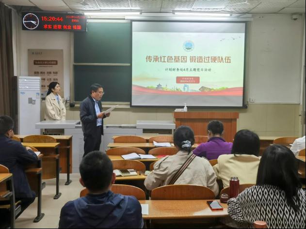 (通讯员 张珊珊)427日,计财处党支部在1教107室开展“传承红色基因、锻造过硬队伍”为主题的支部党日活动,支部副书记李涛主持。