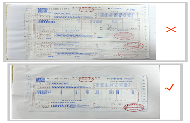 3.票据采用平铺方式粘贴,不遮挡不覆盖、不得卷边、翘边。