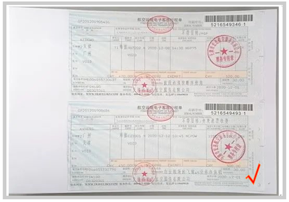 (3)飞机票粘贴示例