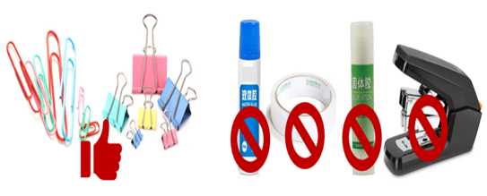4.每张粘贴单之间勿粘贴,原始票据分类整理。为确保扫描工作连续开展,票据粘贴单、报销预约单、附件之间均不需粘贴,使用燕尾夹或曲别针固定,同时将原始报销单据按照不同业务类型进行分类整理,同类原始单据粘贴在一起。