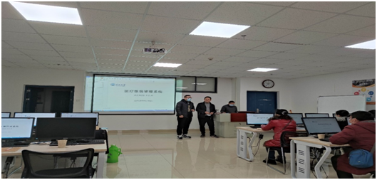 覃发兵教授对医疗报销系统各个功能、各个模块进行了全面细致讲解,并进行实践演示。演示结束后,各医疗报销相关业务人员进行上机操作,并对系统中不解的地方提出疑问,覃教授一一解答。