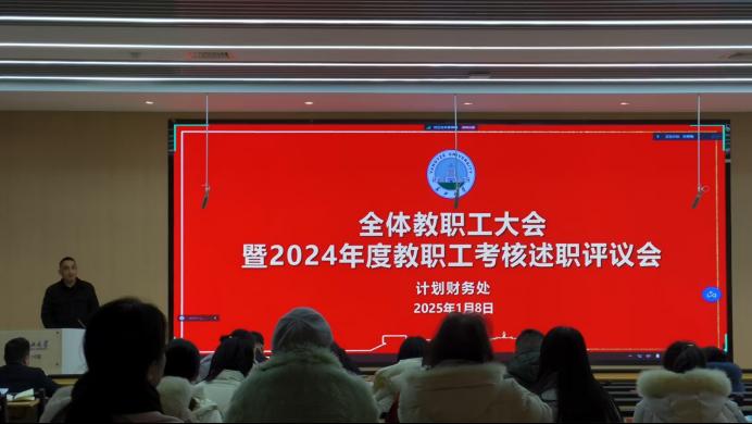 1月8日上午,伟德国际1946在16教A-110召开全体教职工大会暨2024年度教职工考核述职评议会。全体教职工参加会议,副处长彭礼进主持会议。