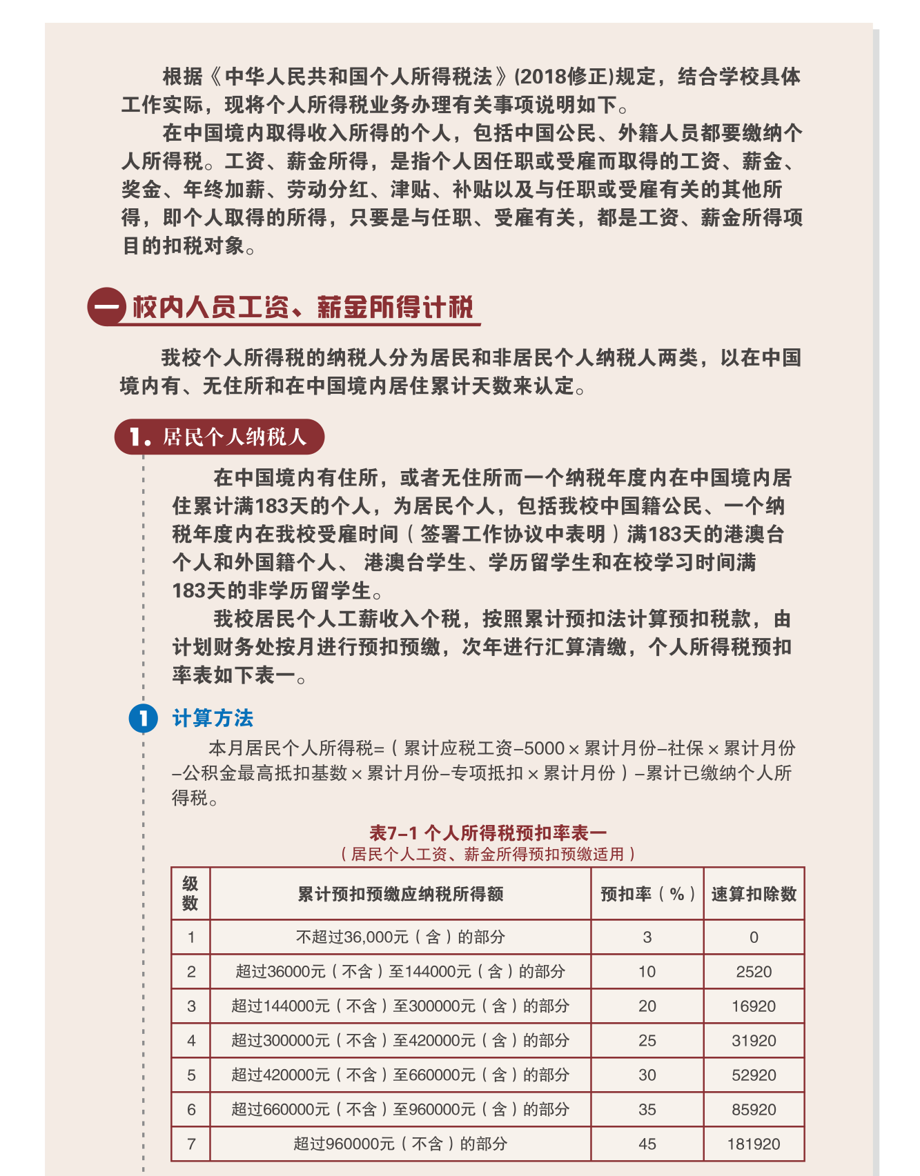 校内人员工资、薪金所得税计税