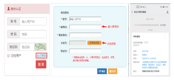 亮点4:登录页面可自主修改密码,通过关注“伟德国际1946”微信公众号后推送,并获取验证码。(原财务系统密码也可通用)