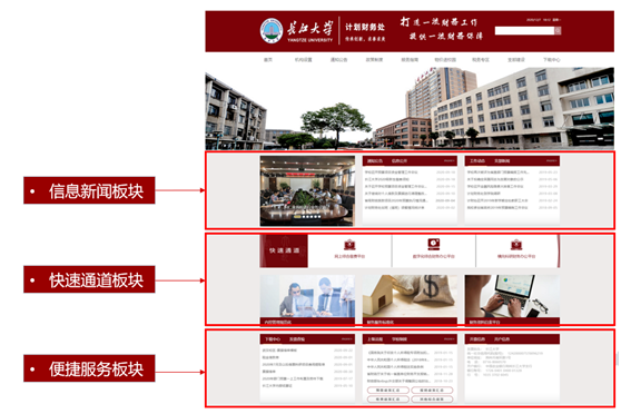 新改版的计财处网站将让您眼前焕然一新,简洁美观的排版将让您获取财务信息更容易,新增的内控管理规范化财务服务标准化模块将让您对财务工作内容更了解,对财务报销及其他财务服务流程与要求更加清晰明了。